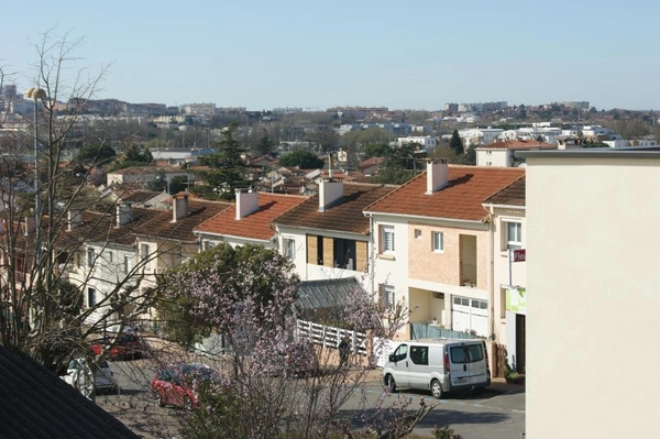 31130 BALMA Eglise tout à pied = écoles, commerces, collège, piscine, bois de Lagarde, maison de ville T5 de surface habitable 100 m2 + jardin arrière + petit garage, libre pour un emménagement début juin. Chaudière gaz condensation, menuiseries PVC double-vitrage et volets roulants électriques, cuisine meublée équipée. Au niveau entrée: hall, séjour en L, cuisine séparée donnant accès au jardin, wc1 avec lave-mains, garage. A l'étage : 4 chambres dont 3 avec (petits) placards, salle de bains avec wc2, salle d'eau dépendante de la chambre principale. Le petit jardin arrière est ensoleillé exposé Sud-Ouest. Loyer mensuel 1400 Euros. pas de provision pour charges: le locataire est l'abonné direct à Eau Toulouse Métropole et aux autres concessionnaires. Honoraires 998 Euros pour chacune des parties, dont 218 Euros pour l'Etat Des Lieux.