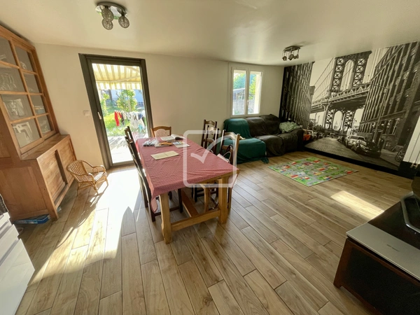 Belle maison de 110 m2 composée en plain pieds d'une cuisine équipée, un salon/salle à manger donnant sur la terrasse et le jardin.