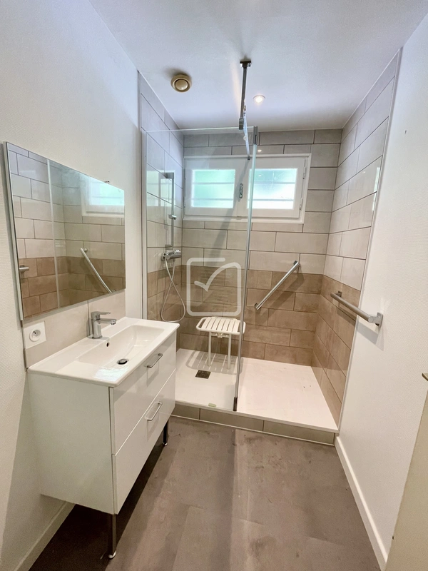 Elle est composée d'une cuisine donnant sur une terrasse, un salon/salle à manger donnant sur une autre terrasse, 2 grandes chambres, une salle d'eau refaite récemment et un wc séparé.