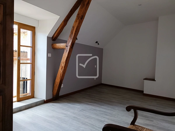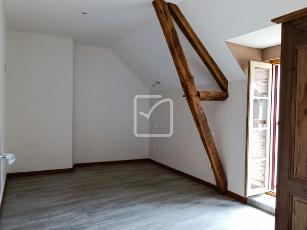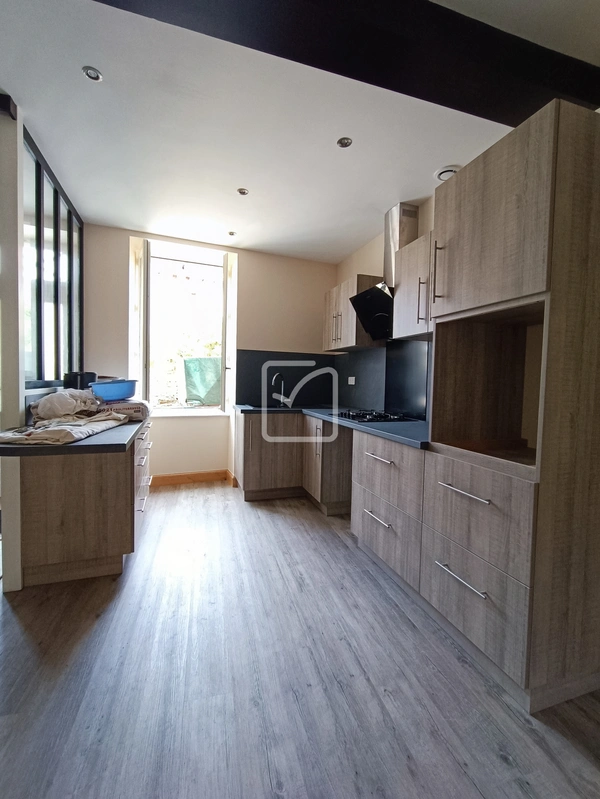 La maison est une maison de bourg. Le devant donne sur une petite rue et l'arrière donne sur la cours intérieure. Tout est neuf ou récent à l'intérieur. Elle se décrit comme suit :