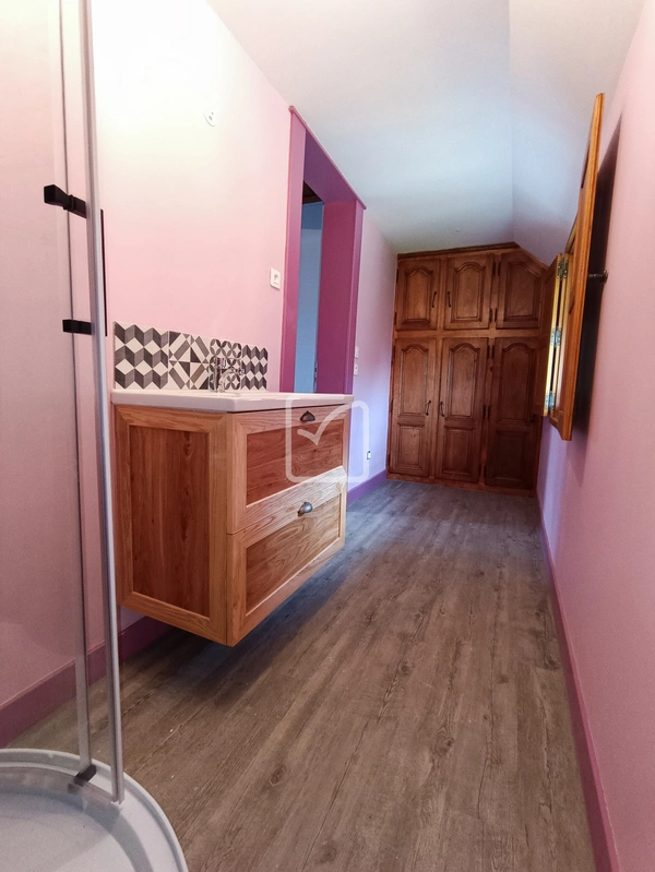 - à l'étage : 3 chambres (13.5 - 12.5 et 24 m2), 2 salle d'eau et wc séparé.