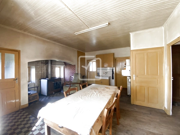 Situé dans un village calme avec vue sur la vallée et à 10 kms des commodités, cet ensemble immobilier de caractère en pierre avec belles charpentes vous séduira par son fort potentiel. La maison élevée sur une cave voutée se compose au 1er niveau de : 1 pièce de vie, 4 chambres, 1 salle d'eau et 1 WC ; les combles sont aménageables sur 2 niveaux. La grange permet d'envisager différentes possibilités, sa belle charpente bateau pourrait être mise en valeur pour une rénovation. 1 four à pain vient compléter ce bien sur une parcelle de 1600 m2 environ avec possibilité d'en acquérir davantage. C'est avec plaisir que je vous ferai découvrir cet ensemble au prix de 135000 EUR honoraires d'agence inclus. Michèle Lherm Imoconseil : 06 11 78 46 04 michele.lherm@imoconseil.com.