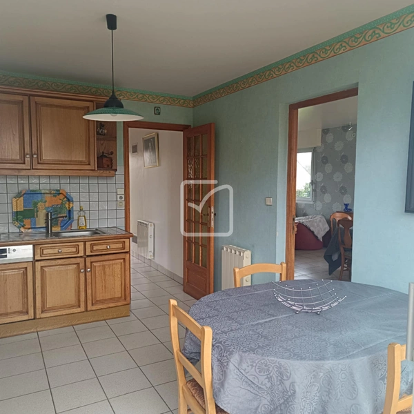 La cuisine équipée avec des électroménagers récents ,n'attend plus que vous pour vos déjeuners en famille avec sa grande baie vitrée qui donne sur le