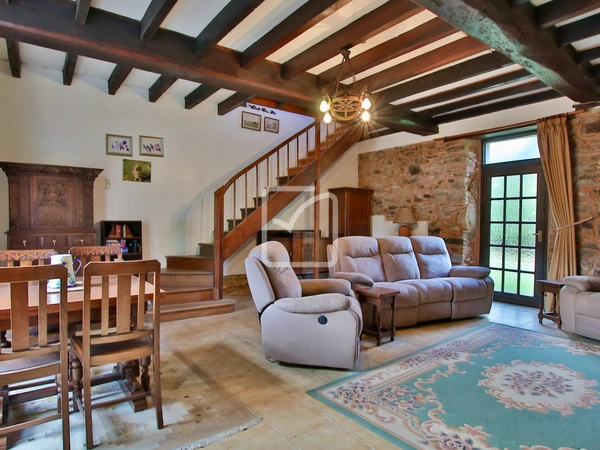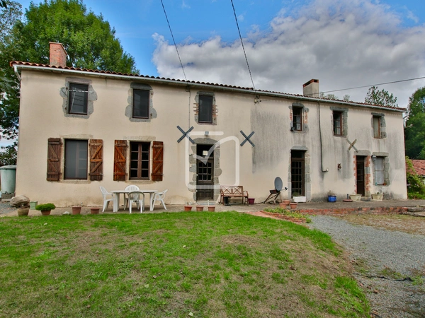Fermette aménagée en 2 logements indépendants, avec dépendances (grange, écurie), le tout sur 1,1 hectare de terrain. Sans vis à vis et au calme, à 10 mns de Moncoutant, 15mns de La Chataigneraie et 20mns de Bressuire. L'ensemble, qui sert de maisons secondaires depuis 30 ans, a conservé son caractère ancien, pierres et poutres apparentes et se distingue par une belle hauteur sous plafond. Le premier logement comprend : Cuisine aménagée, grand séjour avec poêle à bois, salle d'eau/wc. À l'étage : 3 chambres et une salle de bains/wc. Le second logement : Cuisine avec poêle à bois, séjour avec poêle à bois. Salle d'eau, pièce et buanderie aménagées sommairement dans une dépendance attenante. À l'étage : 3 chambres, dont une avec salle d'eau/wc, et une salle d'eau sur le palier. Écurie et grange attenantes, une remise a besoin de travaux urgents de toiture. Une partie de la toiture de l'habitation refaite en 2016. Jardin arboré avec de nombreux fruitiers, un puits et une prairie. Votre contact : Pierre Dessombs 0684694900 - pierre.dessombs@imoconseil.com - Fluent english speaking local agent