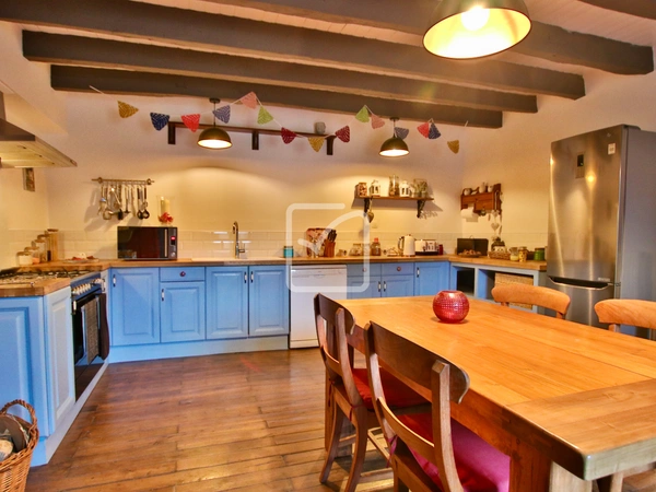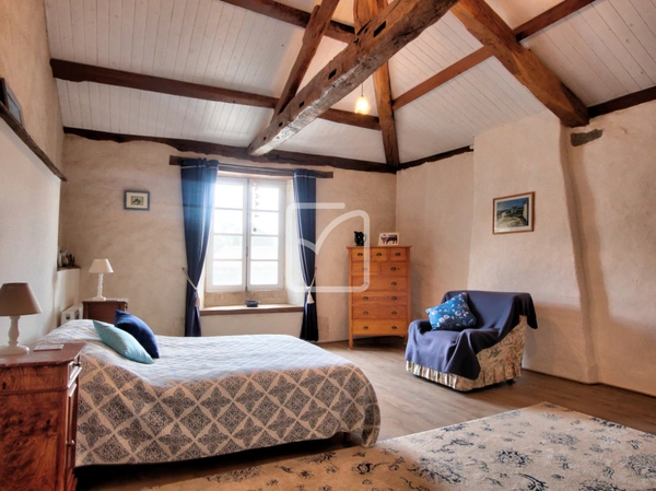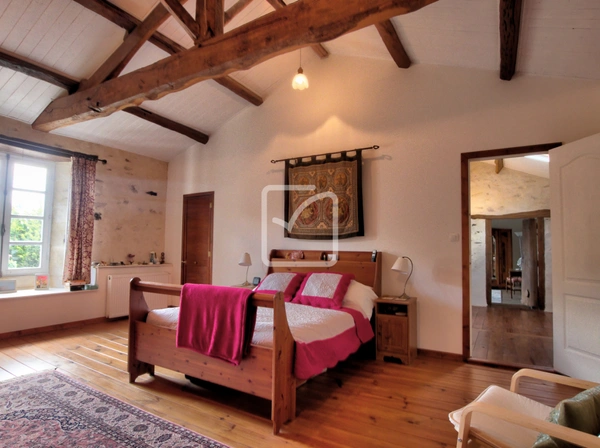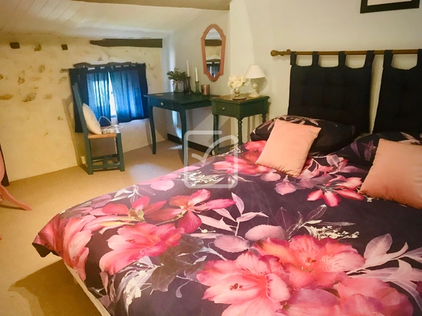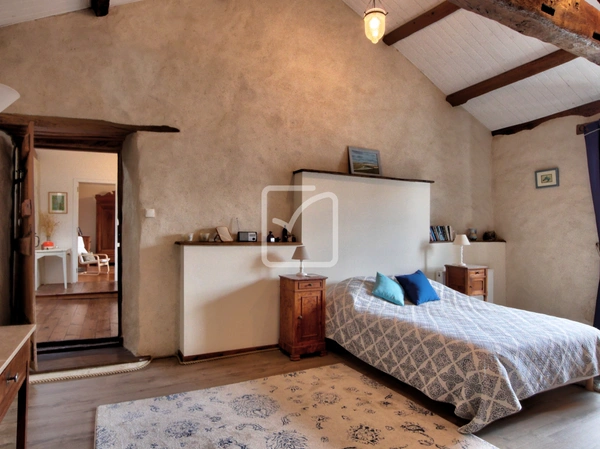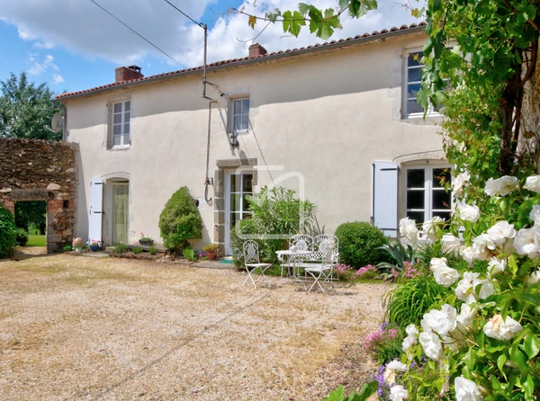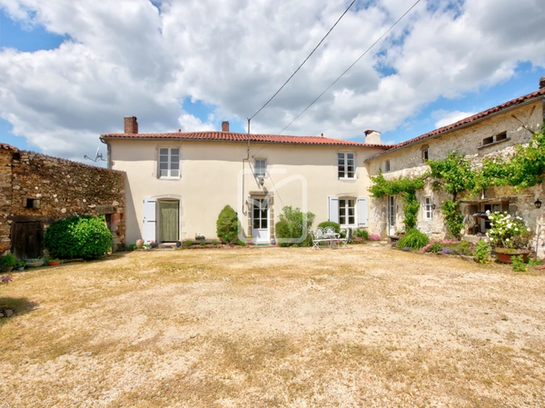 En exclusivité. Beaucoup de caractère pour ce corps de ferme rénové comprenant une spacieuse maison d'habitation (223,6m2), plusieurs dépendances attenantes, une piscine 9x4,5m et un gite indépendant ( 88m2) ! Sur 4300 m2 de terrain arboré, ce bien est situé en campagne au coeur d'un hameau, dispose en façade d'une cour gravillonnée délimitée par les dépendances (granges, abris, four à pain) et d'un jardin sur l'arrière. Habitation principale : Entrée sur parquet avec cheminée, cuisine/salle à manger avec poêle à bois ( 26m2), séjour avec cheminée/poêle (35m2), bureau (9m2), wc, à l'étage 3/4 chambres et une salle de bains sur parquet avec poutres apparentes, dont chambre principale de 32m2 avec salle d'eau privative. Gite : Aménagé récemment, RDC : séjour (31m2) avec poêle à granulés et accès à la terrasse près de la piscine, cuisine/salle à manger. À l'étage, deux belles chambres mansardées et une salle de bains avec douche, baignoire et wc. À proximité de La Chataigneraie et de L'Absie, commerces à 5 mns, située à 1 heure des plages de Vendée, 40 mns du Puy du Fou. Votre contact : Pierre Dessombs - 0684694900 - pierre.dessombs@imoconseil.com - English speaking local agent