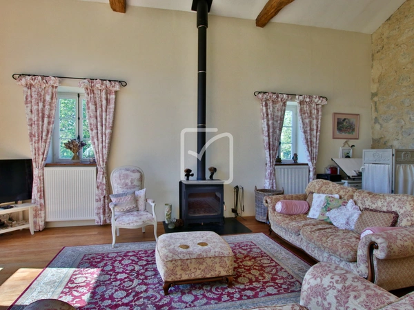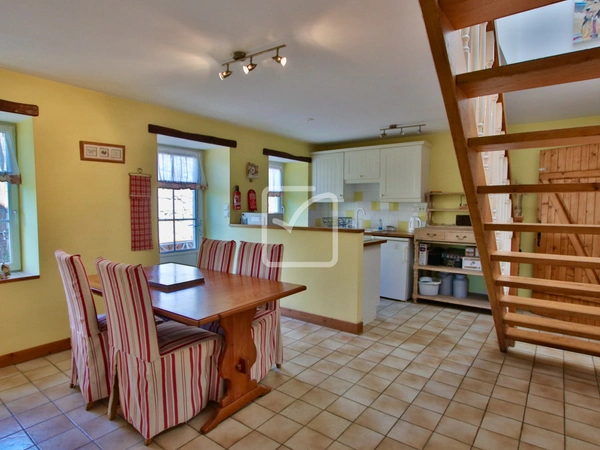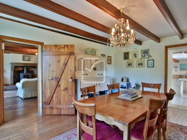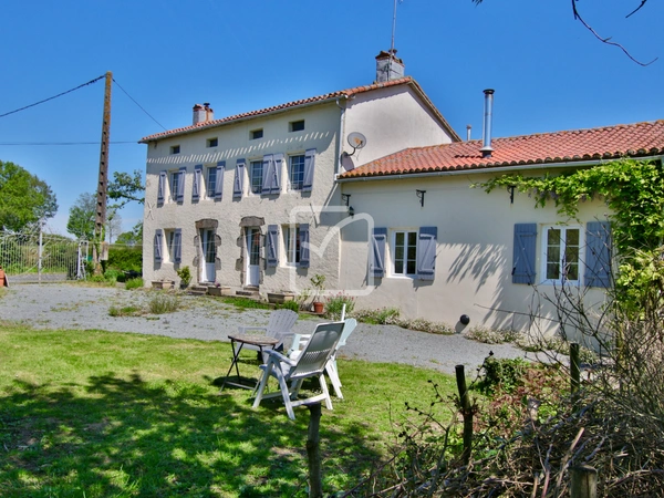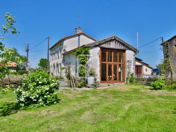 Visite virtuelle disponible - Sur env. 3 hectares dont 2 hectares de prairie, superbe fermette composée de 2 logements avec dépendances. Sans voisinage, à 5 mns des commerces et services de l'Absie, 30 mns de Parthenay et 40 mns de Niort. Cette fermette a été aménagée de façon à obtenir 2 logements attenants et indépendants si nécessaire (opportunité pour location saisonnière). Premiere partie avec un magnifique séjour de 43,3m2, salle à manger, cuisine aménagée et buanderie/wc. À l'étage, une chambre avec salle de bains, et une chambre avec salle d'eau. 2ème partie comprenant un salon avec poêle à bois, une cuisine / salle à manger, et à l'étage 3 chambres, 2 salles d'eau et wc séparé. Côté dépendances : une grange, un atelier, un garage et un hangar pour stockage ou animaux qui s'ouvre sur la prairie. Cour en façade avec un potager, parking sur l'arrière qui mène aux dépendances. Chauffage central assuré par la cuisinière à bois, et il y a 3 autres poêles à bois. Propriété parfaite pour tenir un gite au calme et s'occuper de vos animaux. À voir ! Votre contact : Pierre Dessombs 0684694900 - pierre.dessombs@imoconseil.com - Fluent english speaking local agent .