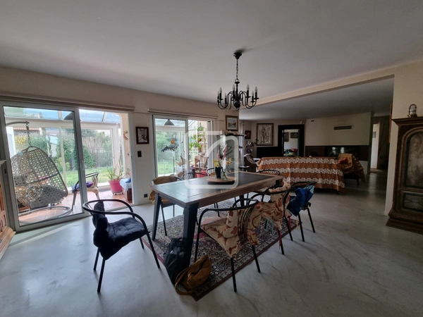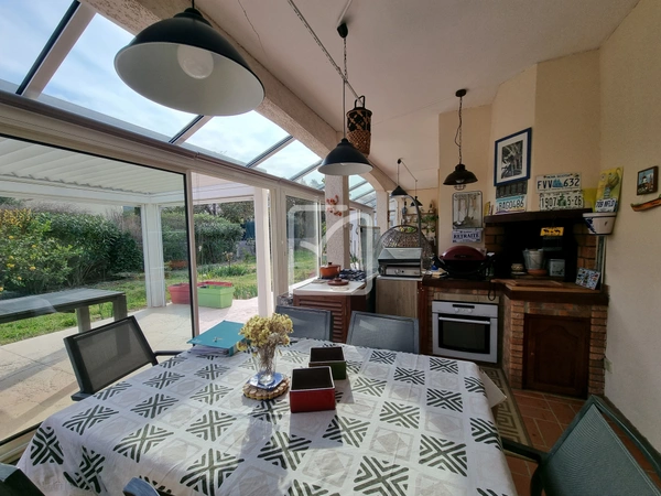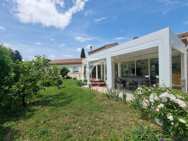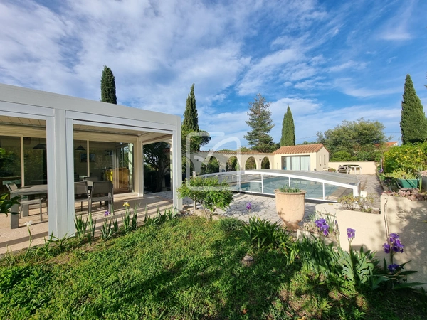 L'extérieur est agrémenté de terrasses, de vérandas et d'une pergola bioclimatique, d'une piscine couverte 10mx5m et son pool-house.