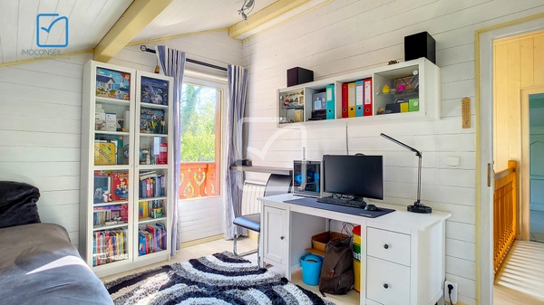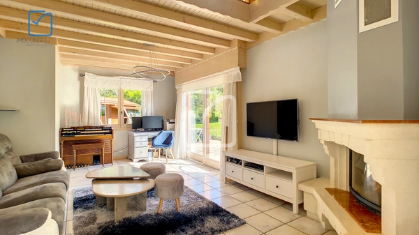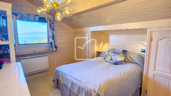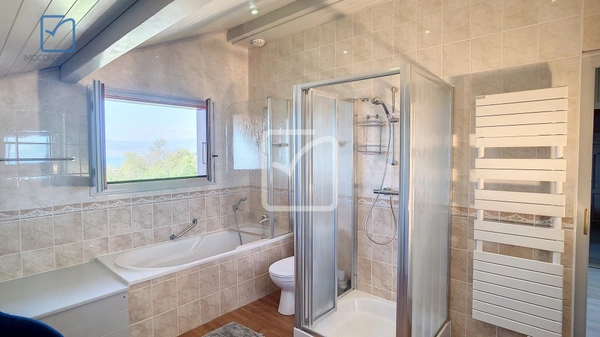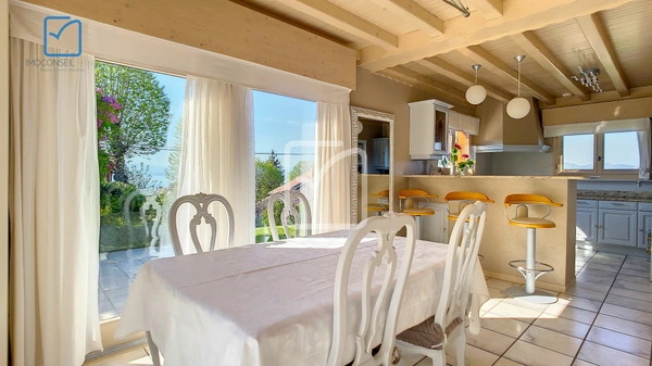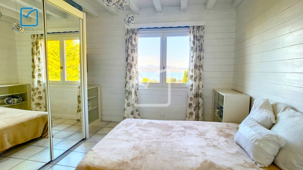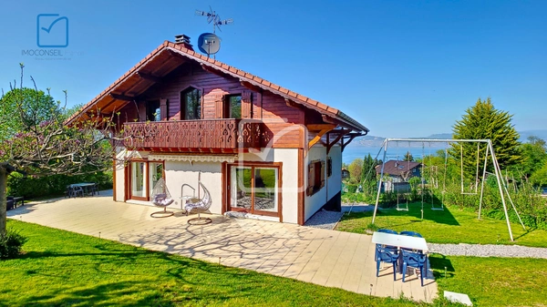 Située dans un environnement calme et avec pour seul vis à vis, la montagne, cette maison est implantée sur un terrain clos et arboré de 1053 m2 avec vue imprenable sur le lac (terrain piscinable).