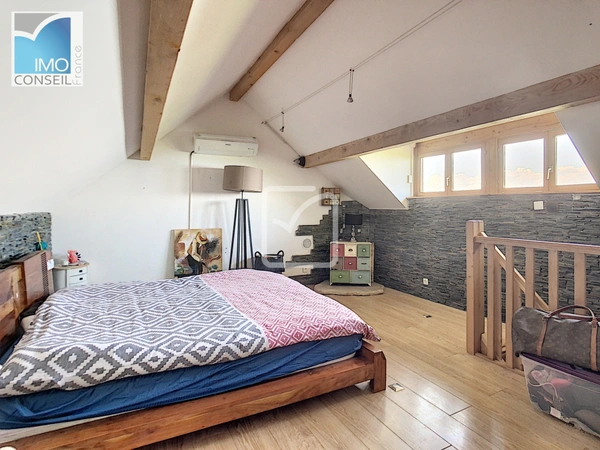 Au 2ème étage : 2 chambres vue lac dont une de 20m2 pouvant être agencée en chambre parentale.