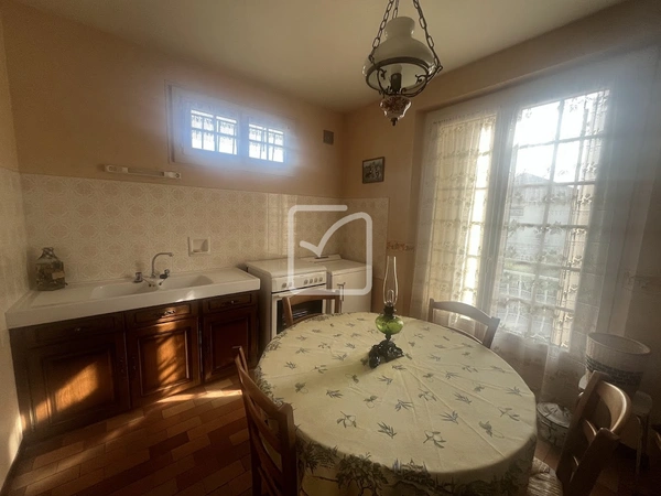 Maison traditionnelle sur sous sol se composant en rez de chaussée d'une entrée avec rangements , d'une cuisine d'été avec accès sur le jardin , d'une chambre, d'une salle d'eau / buanderie . Avec son entrée indépendante ce petit T2 peut être loué .