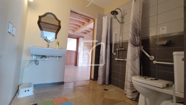 - UN GITE sur environ 164 m2 de superficie habitable, AUX NORMES PMR, avec 5 pièces, dont 3 chambres avec leurs salles d'eau et wc privatifs, et une en rez de chaussée.