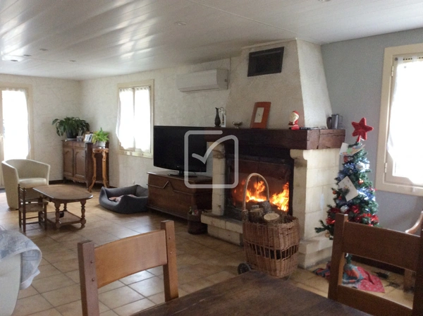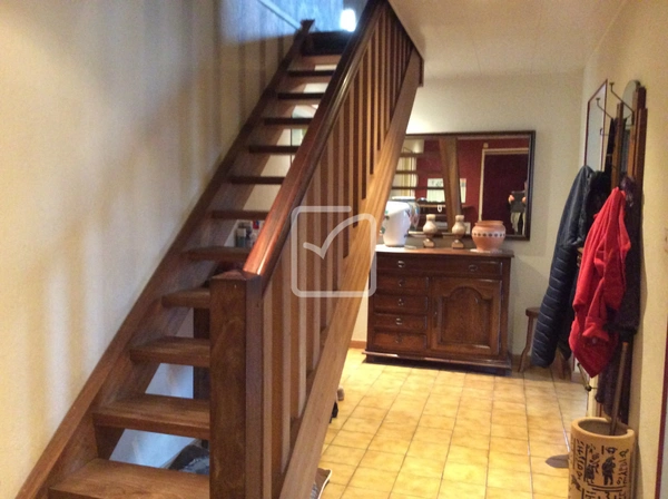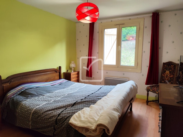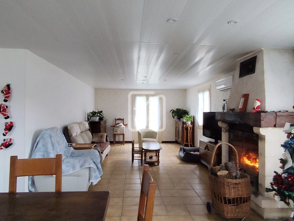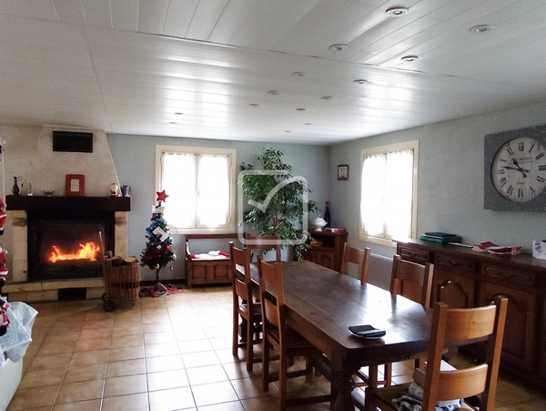 La maison vous offre au rdc 1 salon séjour convivial autour de sa cheminée, 1 cuisine équipée, une salle d'eau récente ainsi qu'une chambre. A l'étage, qui nécessite un peu de rafraîchissement, se trouve un bel espace pouvant faire office de salle de jeux-TV, 4 chambres, une salle de bain,