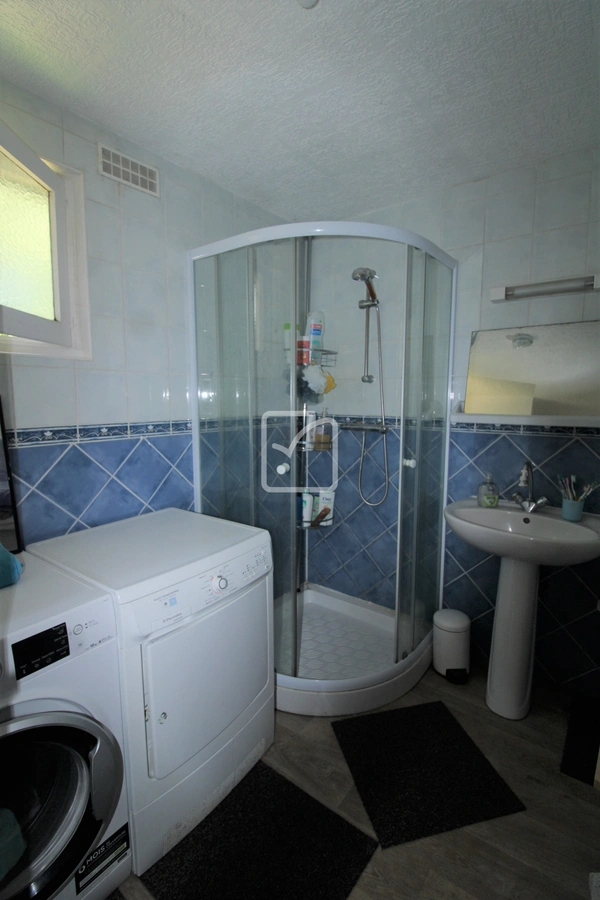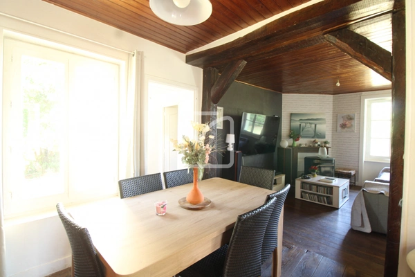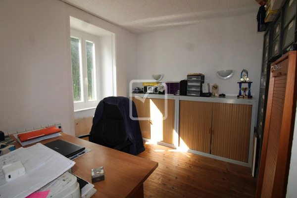 au rez de chaussée, on entre dans une belle cuisine, suivi de la salle à manger puis du salon. Une chambre, salle d'eau et wc séparé. Un bureau.