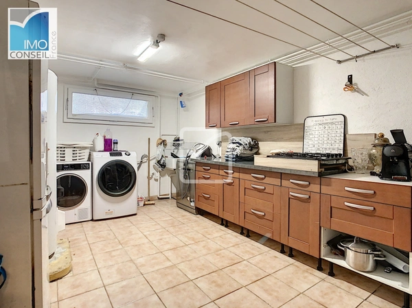 Au sous-sol, une grande chaufferie/buanderie, garage double de 41 m2 ainsi que 2 caves.