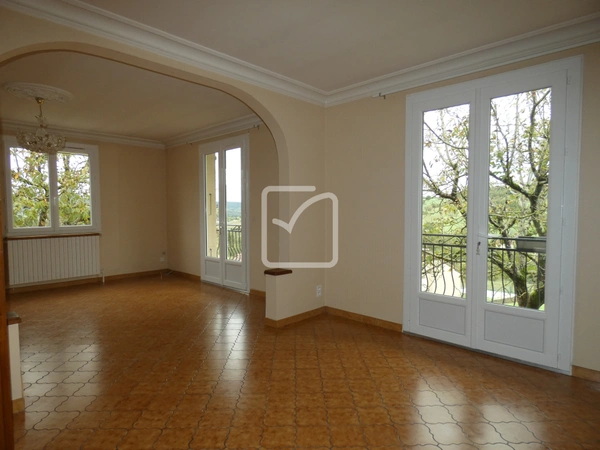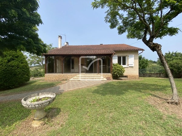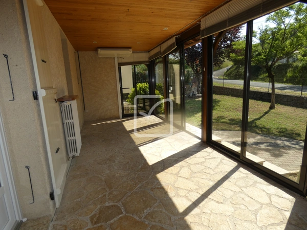 Jolie maison avec belle vue au calme à proximité de toutes les commodités. Cette habitation très agréable à vivre se compose de : au niveau de vie : 1 véranda orientée sud-est climatisée, 1 belle et grande entrée, 1 cuisine séparée semi équipée, 1 salon salle à manger donnant sur la vallée avec cheminée, 2 chambres, 1 salle de bain, 1 WC. Cette maison est entièrement sur sous-sol bati en pierres très bien éclairé composé de : 1 garage, 1 cave, 1 chaufferie buanderie, 1 cellier, 1 cuisine d'été, 1 chambre.1 garage supplémentaire vient compléter ce bien très lumineux où l'on se sent bien et qui permet de poser ses valises sans travaux à réaliser. Le terrain arboré et fleuri est piscinable. C'est avec grand plaisir que je vous le ferai découvrir .
