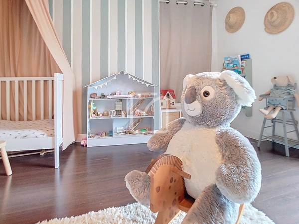 À l'étage, la maison offre trois chambres confortables dont deux avec balcon ainsi qu'une salle de bains et un WC séparé. Le dernier niveau abrite un bureau, parfait pour le télétravail ou un espace de lecture tranquille, ainsi qu'une superbe suite parentale. Cette dernière inclut une salle d'eau privative avec WC, constituant un véritable espace de détente et d'intimité.
