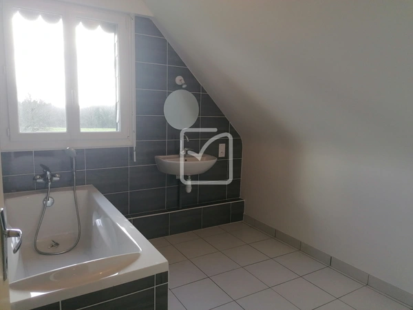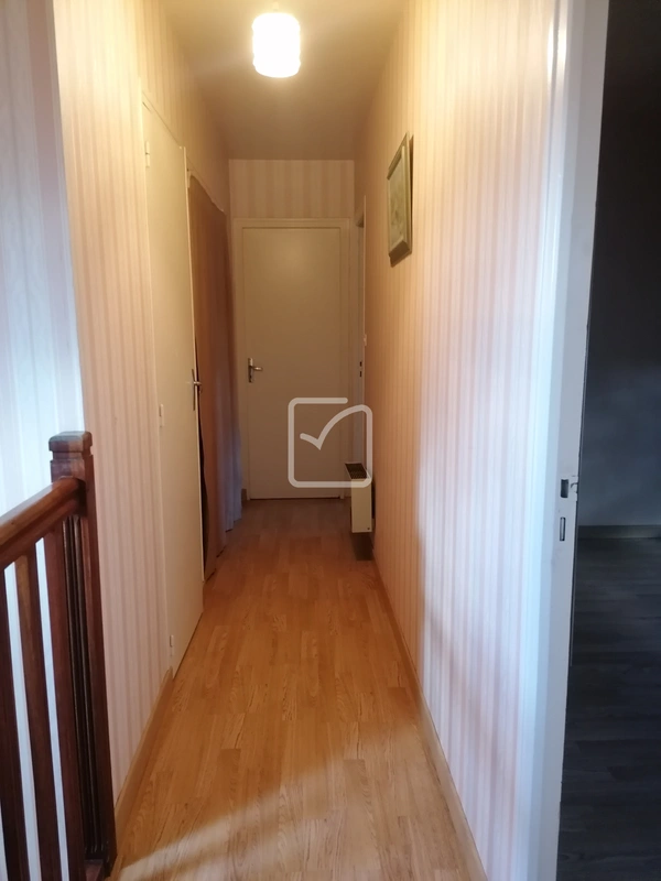 A l'étage, le palier dessert 3 chambres sur parquet flottant, une salle de bains refaite, un WC et un grenier isolé.