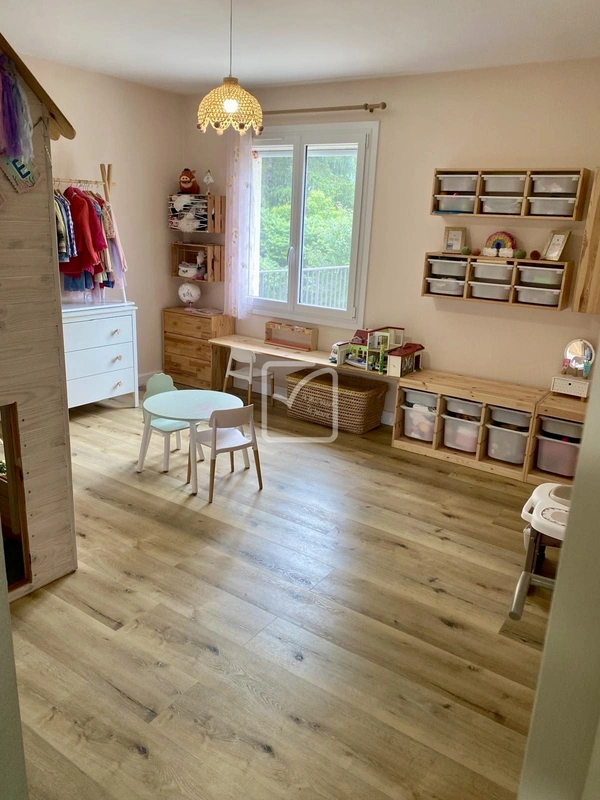 Sous-sol de 129 m2 ultra-fonctionnel : Un studio indépendant : séjour + coin cuisine, 1 chambre supplémentaire attenante, buanderie avec douche et WC, cave espace de stockage, chaufferie, 2 grands garages