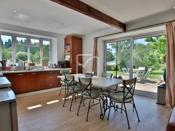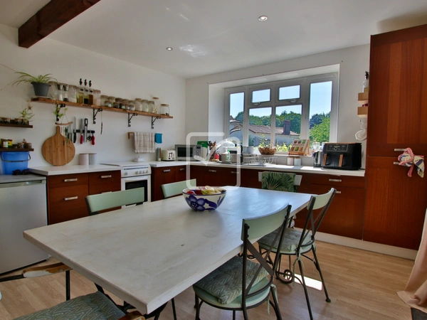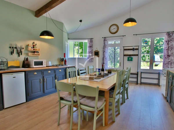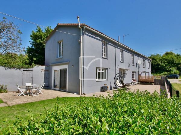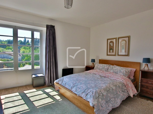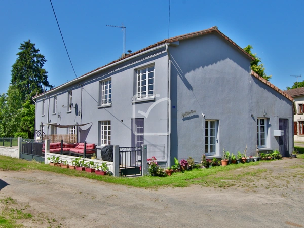 Visite virtuelle disponible - Dans un hameau de Gâtine et sur environ 2300m2 de terrain, maison spacieuse de 4/5 chambres, actuellement aménagée pour obtenir 2 logements indépendants afin de tenir une activité de gîte rural. Volumes généreux pour cette habitation qui demande encore des quelques travaux de finition à l'étage: Entrée avec un escalier vers l'étage, séjour avec poêle à bois, cuisine/salle à manger avec baies vitrées qui s'ouvre sur la terrasse, buanderie/wc, dégagement avec escalier vers l'étage et qui mène également à une seconde cuisine/salle à manger spacieuse, salle d'eau/wc, petit salon et une chambre. À l'étage : 4 grandes chambres, dont 2 attendent simplement une décoration, et une grande salle de bains/wc. Terrasse en façade et sur le côté. Jardin qui mène au garage détaché et à un espace arboré au calme. Electricité et plomberie récentes, assainissement conforme. RDC - Cuisine : 25 m2, Salle de bain : 7 m2, Salon/sejour : 15.6 m2, Chambre : 16 m2, Entrée : 9.5 m2, Salon/sejour : 34.5 m2, Cuisine : 23 m2, Buanderie : 5 m2. ÉTAGE - Chambre: 16.7 m2, Chambre: 16.9 m2, Chambre: 20.2 m2, Chambre: 32.8 m2, Salle de bains : 10 m2. Votre contact : Pierre Dessombs 0684694900 - pierre.dessombs@imoconseil.com - Fluent english speaking local agent