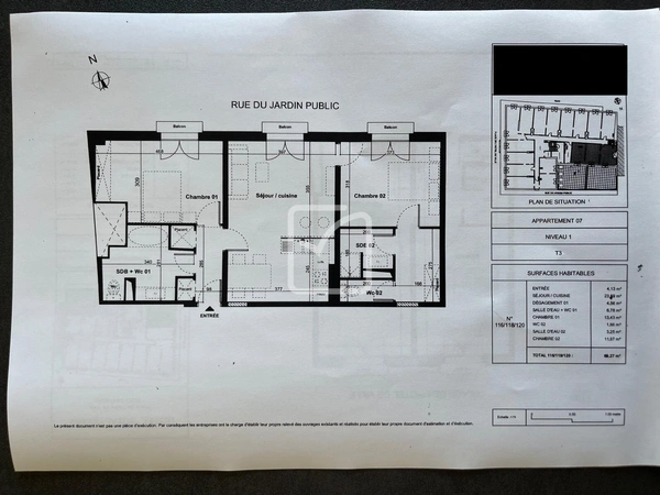 Appartement F3 de 69.11 m2 dans une résidence au coeur du village.