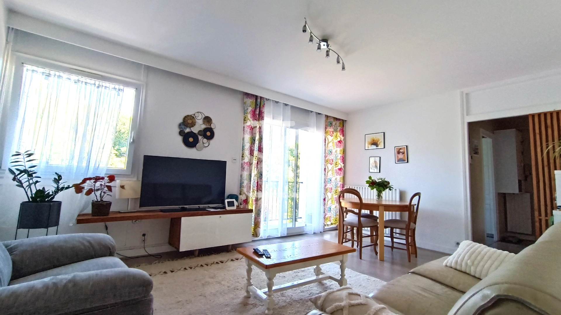 Situé en deuxième étage sans ascenseur , sur une superficie habitable d'environ 80 m2, le logement est un traversant (donne sur 2 côtés de l'immeuble) et comprend : une entrée avec placard, cuisine séparée aménagée et équipée qui donne sur un cellier, séjour sur balcon, 3 chambres avec placards, salle d'eau avec balcon fermé qui vous permet de faire sécher votre linge en extérieur, wc séparé. Garage privatif. Local à vélo commun.