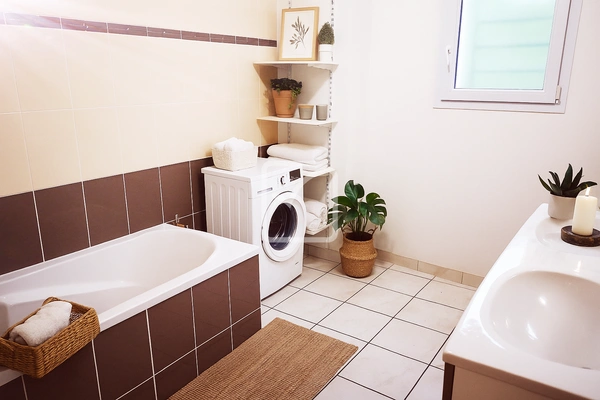 1 Grande salle de bain avec baignoire et coin buanderie et sèche serviette. 1 WC séparé.