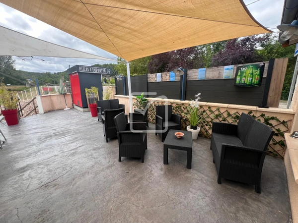 Murs et fond d'un bar restaurant pizzeria au coeur du LOT avec une grande terrasse de 100 couverts et une vue imprenable sur la rivière de la Dordogne. Ensemble entièrement rénové en 2022 état neuf.