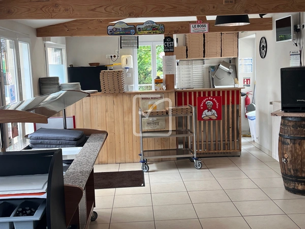 En intérieur une salle de restaurant de 50 couverts, un bar avec licence IV cuisine professionnelle équipée à neuf et une plonge indépendante. L'établissement dispose de deux distributeurs à pizza dont un sur ROCAMADOUR.