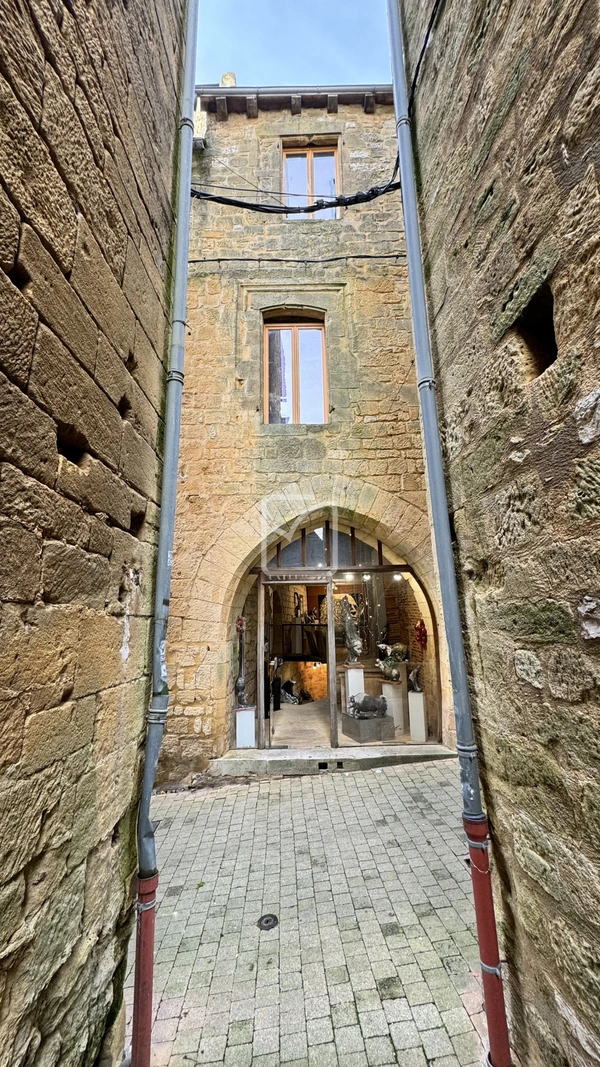 Bel Immeuble en Pierre avec Porte en Ogive du XIVo Siècle avec Galerie D'art et étages à Aménager.