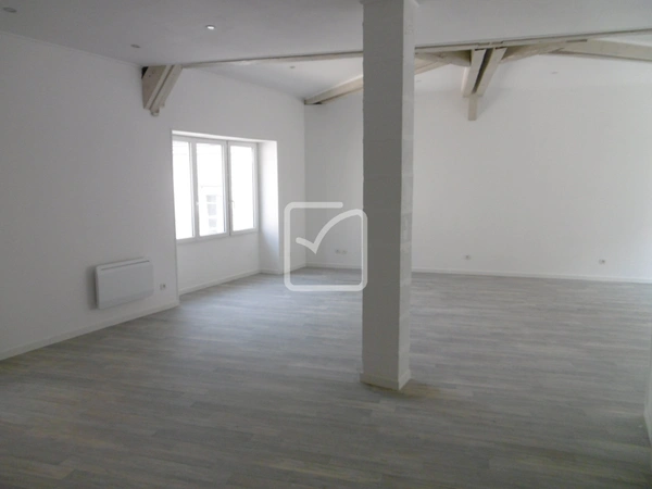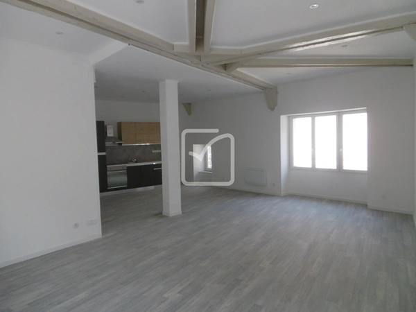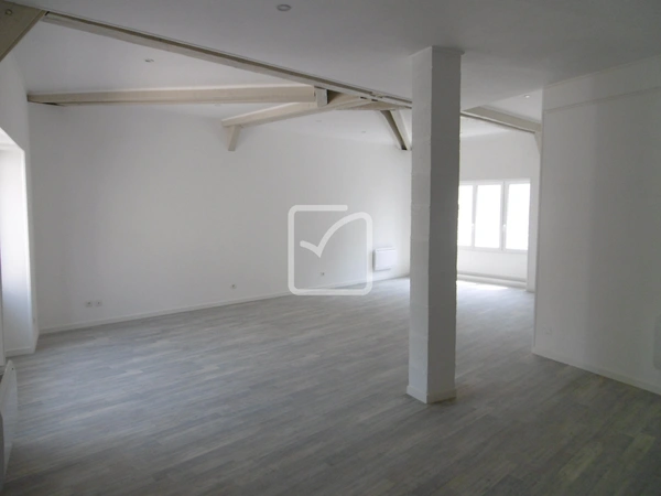 Au deuxième étage, on accède à un appartement de 104m2 avec une pièce de vie spacieuse et lumineuse comprenant une cuisine aménagée