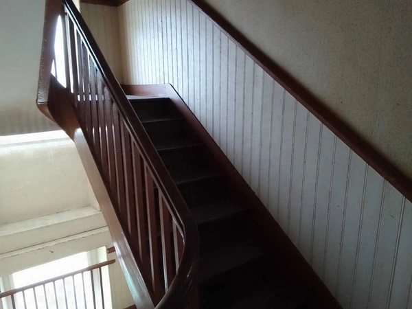 - et enfin au dernier étage 2 appartements F2 de 31 m2 chacun équipés d'un box, la cage d'escalier en bois lui donne un cachet harmonieux.