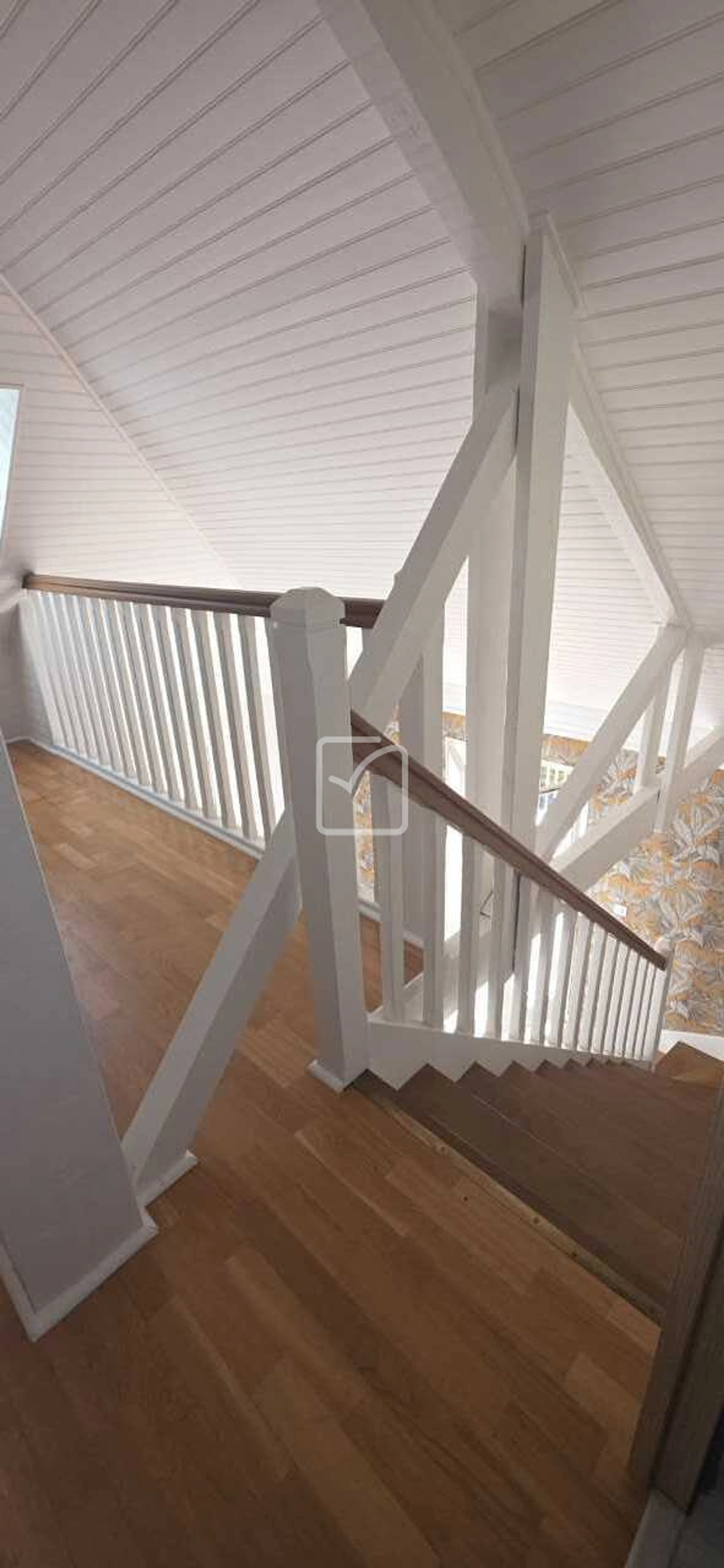 A l'étage, un espace mezzanine dessert une grande chambre avec dressing offrant intimité et volume.