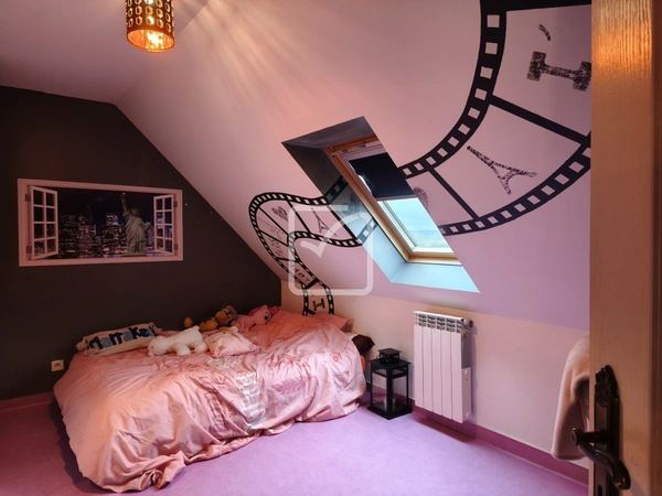 A l'étage, vous trouvez 3 chambres, une mezzanine, une salle de bains (avec douche et baignoire) dont une chambre parentale de 40 m2 avec dressing et coin bureau.