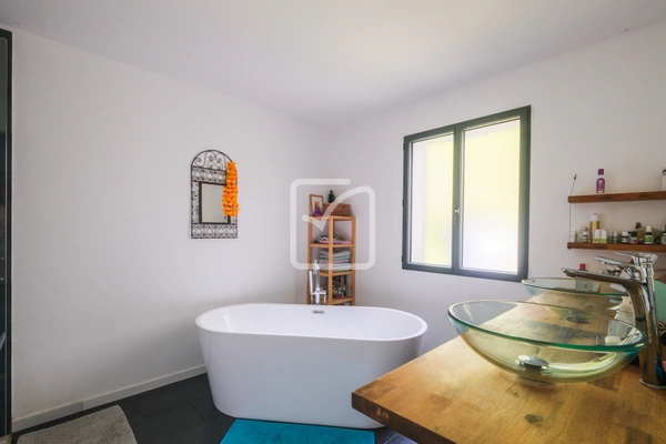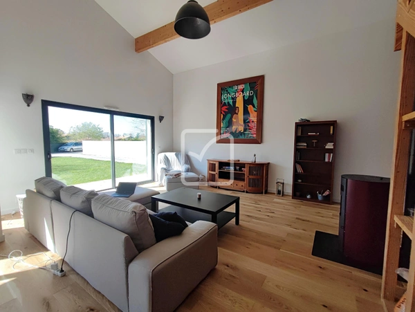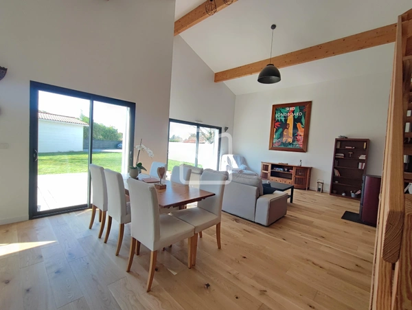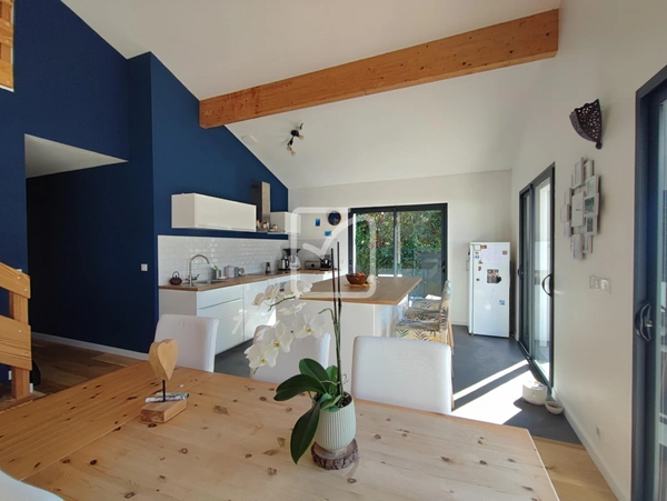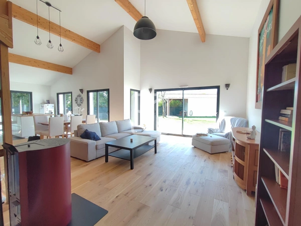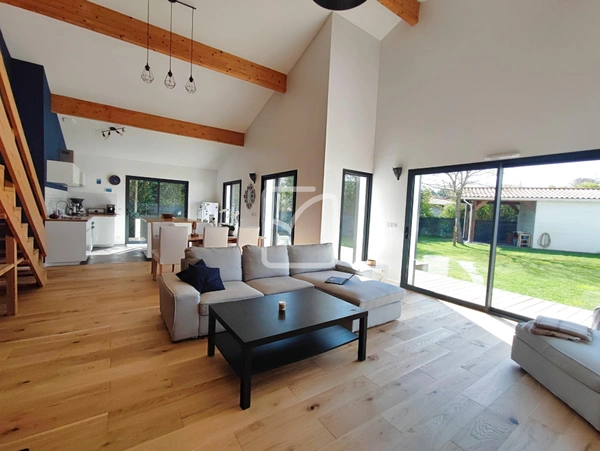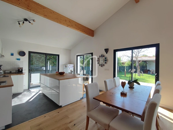Biscarrosse bourg, Landes : Belle villa récente RT 2012 lumineuse de type T5 avec de très beaux volumes, d'une surface de 152 m2 environ sur 1325 m2 terrain dans un quartier très calme et recherché.Cette belle villa de 2017 en excellent état comprend de plain-pied : Une entrée placards, deux toilettes, un grand salon séjour de 40 m2, une cuisine ouverte aménagée & équipée, une vaste mezzanine, un cellier, dégagement, quatre chambres spacieuses dont une avec son dressing et salle d'eau, une salle de bains et douche. Terrasse exposition sud ouest, magnifique jardin clos sans vis à vis avec son garage indépendant aménagé d'un carport. Nombreuses prestations (chauffe eau thermodynamique,double vitrage, parquet chêne massif, volets électriques centralisés portail électrique, arrosage intégré,....) et beaucoup de charme. Océan et plages à 12 km Pour la visiter contacter Mme LACOMBE Isabelle 06 26 26 42 26 - i.lacombe@imoconseil.com Agent Mandataire Indépendant IMOCONSEIL France - Réf 28858 - Les honoraires sont à charge vendeur.Montant estimé des dépenses annuelles d'énergie pour un usage standard établi à partir des prix de l'énergie de l'année 2022 : entre 450 EUR et 650 EUR