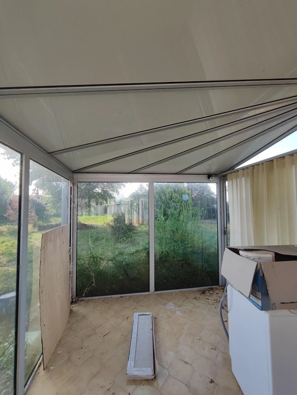 La maison se compose d'une entrée ouvrant sur un salon-séjour, d'une salle d'eau, d'un WC indépendant, d'un cellier, de trois chambres, ainsi que d'une agréable véranda fermée.