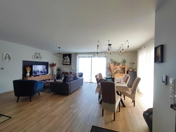 Biscarrosse bourg : A vendre Maison récente de type T4 sur une surface de 112 m2 environ, secteur calme et proche centre ville, elle comprend une entrée donnant sur un vaste salon séjour, une cuisine ouverte aménagée & équipée,un cellier, un couloir desservant trois chambres dont une avec sa suite parentale, une deuxième salle d'eau ,un toilette et son garage attenant, terrasse beau jardin clos de 467 m2 exposition sud. Lumineuse aménagée avec goût, nombreuses prestations (panneaux photovoltaïques.....) réf : 30015