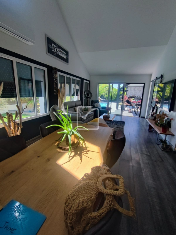 A vendre Biscarrosse :Belle rénovation pour cet ensemble immobilier comprenant trois maisons chacune avec accès indépendant se composant d'une première villa qui comprend : une entrée, un salon séjour, une cuisine ouverte aménagée & équipée, un cellier, une chambre avec salle d'eau, une suite parentale avec chambre/dressing/salle d'eau, un toilette, au premier étage nous retrouvons une mezzanine avec une troisième chambre et sa salle de bains toilette. A l'extérieur une belle terrasse, piscine, coin pool housse, local technique, un double garage,parkings. Deux autres habitations de type T3 entièrement aménagées & équipées. Belles prestations, équipement de qualité.