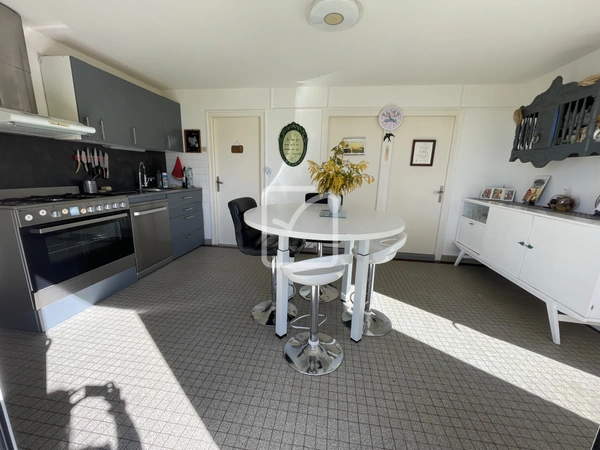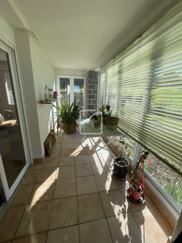 -2ème Maison de 75 m2 composée en rez de chaussée d'une cuisine, un salon/salle à manger donnant sur une lumineuse véranda et un WC.