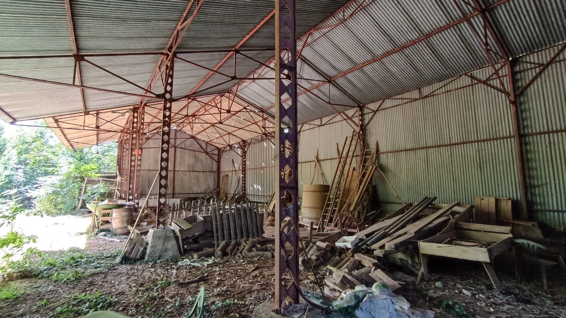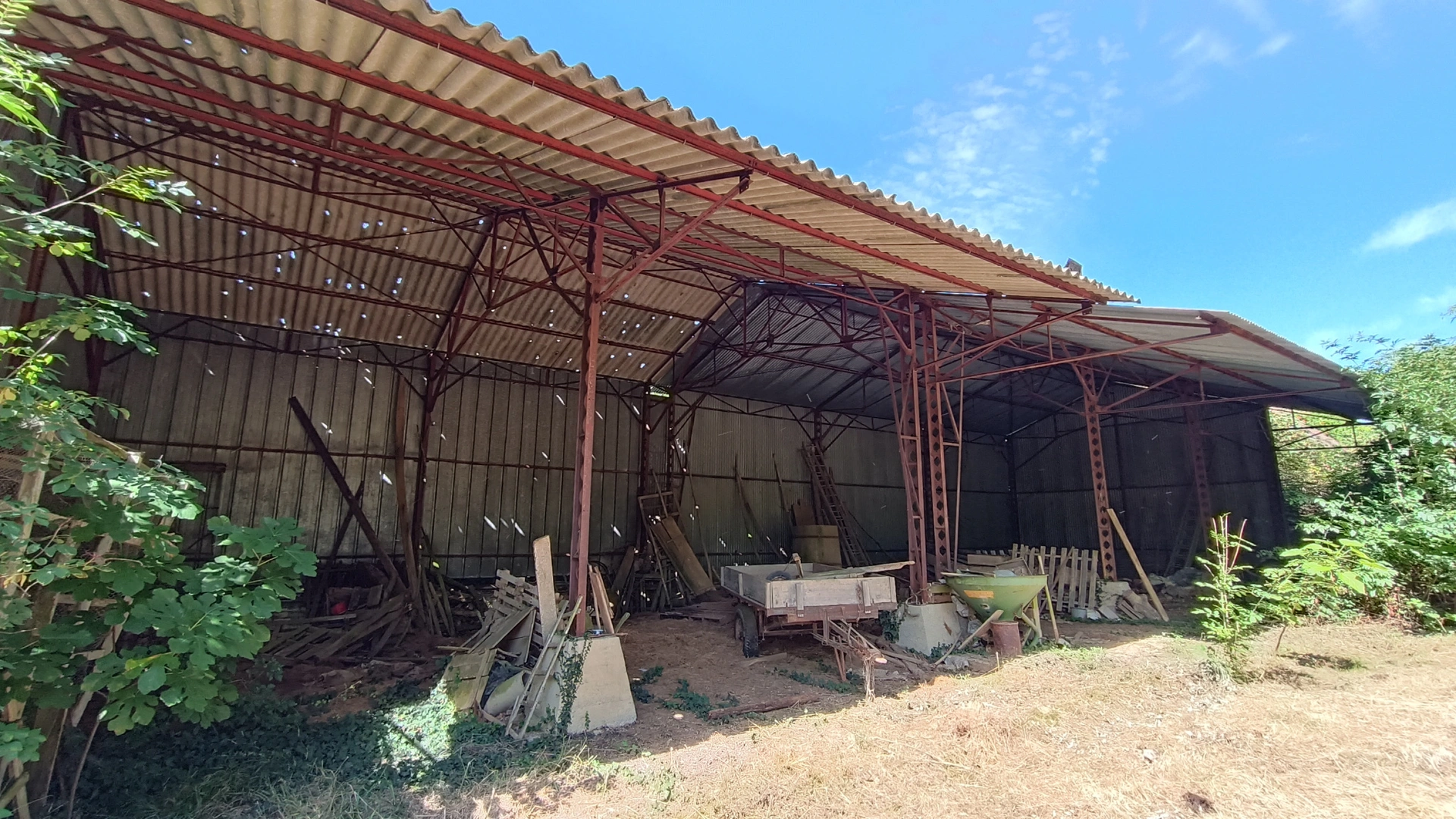 Prévoir de nombreux travaux : pour la maison à restaurer entièrement, (électricité, assainissement, isolation, chauffage, etc....), pour la grange à déblayer de sa toiture entièrement et à refaire pourquoi pas en bac acier pour alléger fortement le montant. Enfin, une petite partie du hangar a pris la grêle.