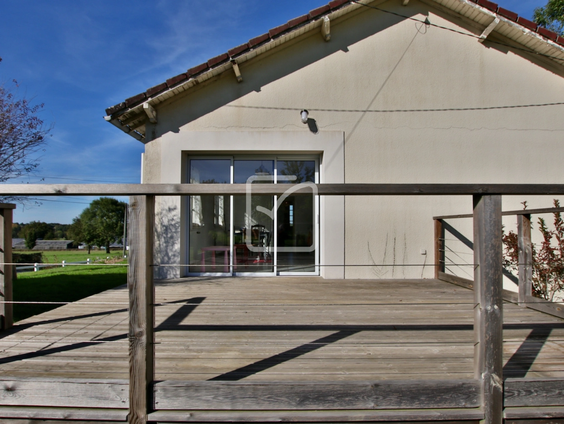 Exclusivité - Visite virtuelle disponible - Sur env. 1600m2 de terrain, pavillon sur sous-sol au calme avec vues dégagées. 15 mns de Bressuire, 10 mns de Moncoutant, 1ers commerces et école à 2 mns sur Courlay. Niveau principal : Entrée, séjour 20,7m2 avec cheminée/insert, cuisine/salle à manger 21m2 qui s'ouvre au Sud sur une terrasse en bois surplombant le jardin , 3 chambres (11 - 11 - 12m2), salle de bains et wc séparé. Sous-sol accessible depuis la cuisine : Garage 44m2, dégagement/atelier 40m2 avec chaufferie, wc, et une cave. Terrain arboré avec un grand abri de jardin. Chauffage fioul, assainissement à remettre aux normes. Votre contact : Pierre Dessombs 0684694900 - pierre.dessombs@imoconseil.com - Fluent english speaking local agent