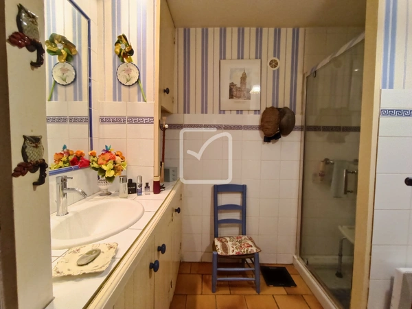 Systèmes de chauffages : 2 cheminées avec poêles à bois, chauffage au sol au rez-de-chaussée, radiateurs électriques à l'étage, climatisation dans la cuisine.