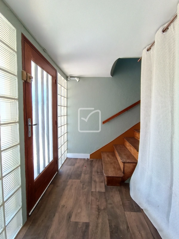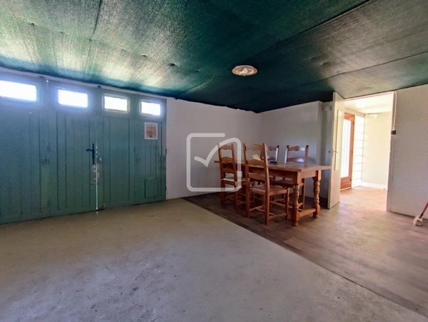 Sur 2 niveaux, le rez de chaussée comprend : une belle entrée et environ 50 m2 de garage. A l'étage : cuisine séparée et aménagée , séjour, 2 chambres, salle de bains, wc séparé.