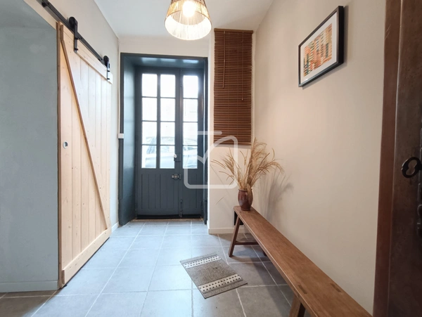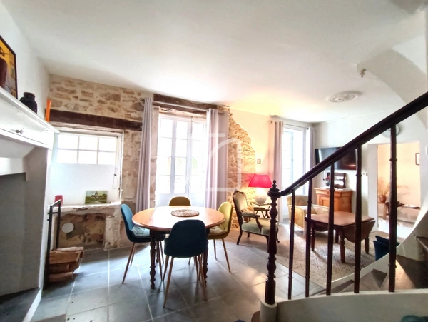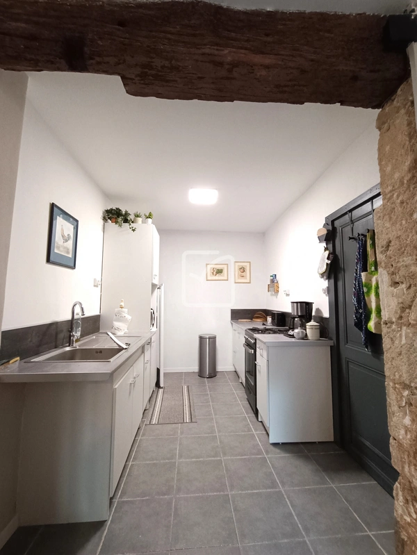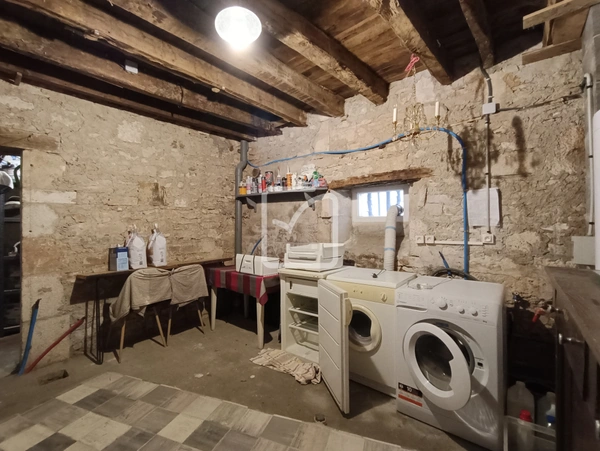 - Au rez de chaussée : entrée, cuisine aménagée et équipée, séjour avec cheminée et poele à bois, bûcher, cellier / buanderie.