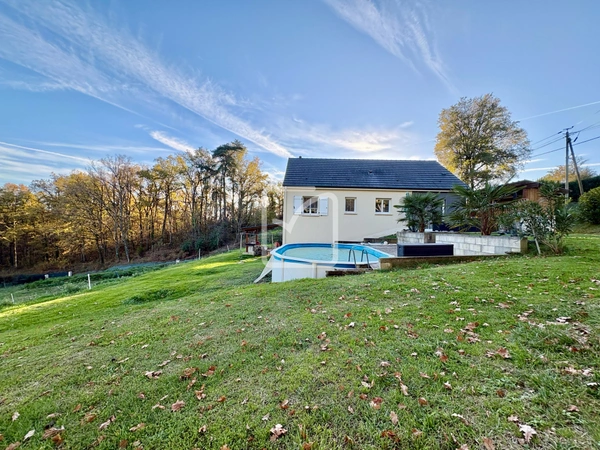 Le terrain de 1 770 m2 offre un agréable extérieur avec une piscine hors sol.