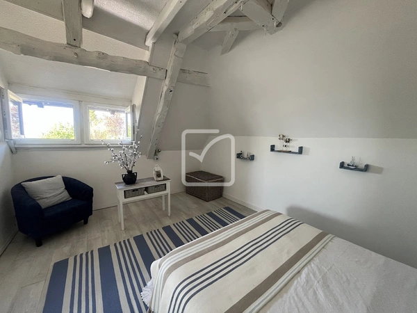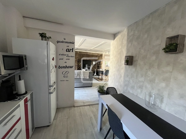 Restaurée et décorée avec beaucoup de goût , cette maison se compose au rez de chaussée d'une belle pièce de vie avec cuisine ouverte meublée et équipée, dégagement , salle d'eau et wc. A l'étage 2 belles chambres spacieuses .