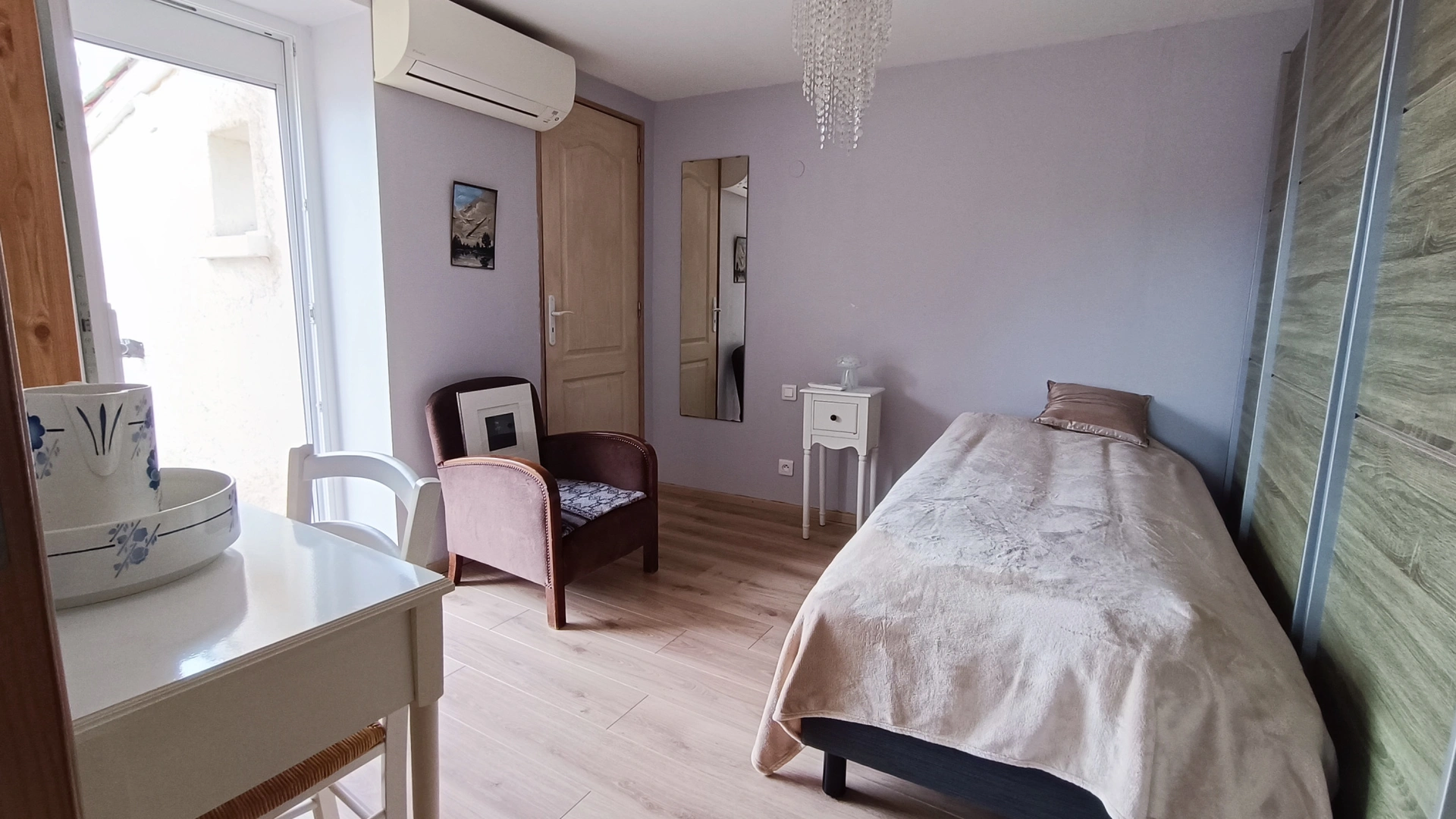 D'une surface habitable de 81 m2, elle offre un séjour convivial (environ 42 m2 de pièces de jour) avec poutres apparentes et cheminée à foyer ouvert, une cuisine américaine, deux chambres (10 et 15 m2), un autre petit salon, salle d'eau avec wc. Le jardin de presque 3 000 m2 dispose d'une courette idéale pour profiter des beaux jours.