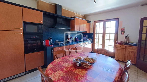 Au rez de chaussée : entrée, cuisine séparée aménagée et équipée donnant sur belle terrasse, salle à manger donnant sur autre terrasse , salon avec cheminée à insert, 1 chambre, salle d'eau, wc séparé et buanderie. A l'étage : mezanine pouvant servir de bureau ou de chambre d'appoint, 2 belles chambres (14 et 22 m2), salle de bains avec wc. Au sous sol enterré : un beau garage de 54 m2 et un vide sanitaire. Superficie habitable totale 153 m2 environ.