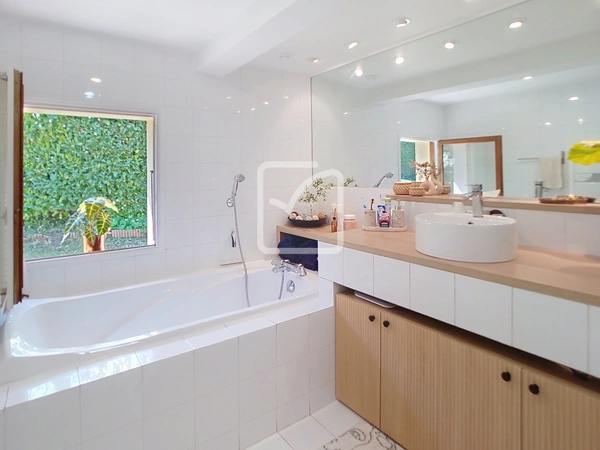 Implantée sur un terrain clos et arboré d'environ 850 m2, elle offre une atmosphère paisible et chaleureuse, où les volumes et les circulations ont été pensés pour un quotidien fluide et agréable.
