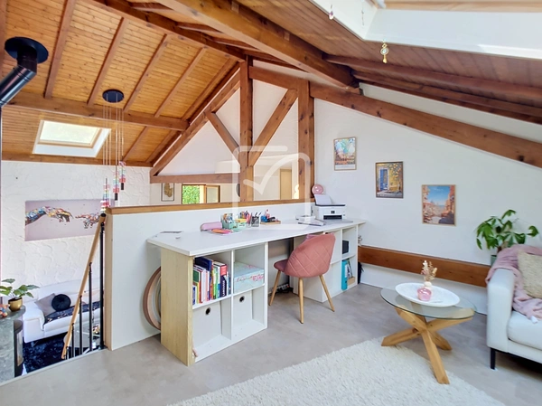 Attenante, une vaste pièce traversante nord-sud m2, baignée de lumière, pouvant s'adapter à de nombreux projets d'aménagements/de vie, bénéficie d'un accès indépendant.