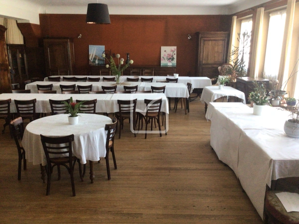 L'intérieur est constitué d'un espace cuisine professionnelle, d'un coin salon et d'une grande salle de 108.55m2.